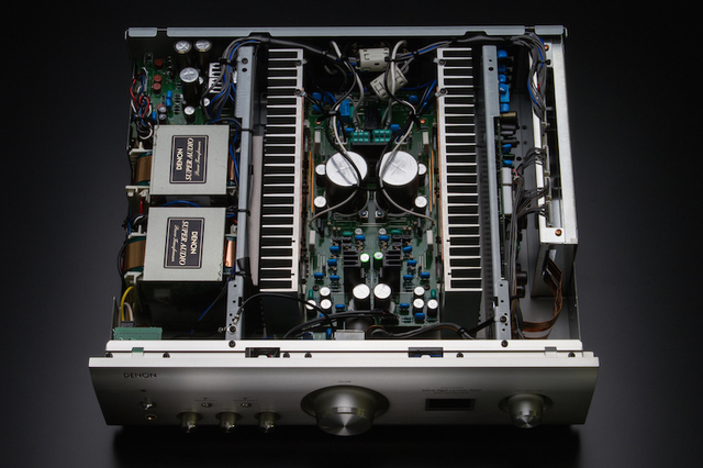 制振構造については、デノンの設計思想「ダイレクト・メカニカル・グランド」をさらに押し進め、ACアウトレットの排除による不要振動の低減、電源基板のヒートシンクを大型化して振動を抑制、電源部の放熱効率も改善するといった対策が実施された。