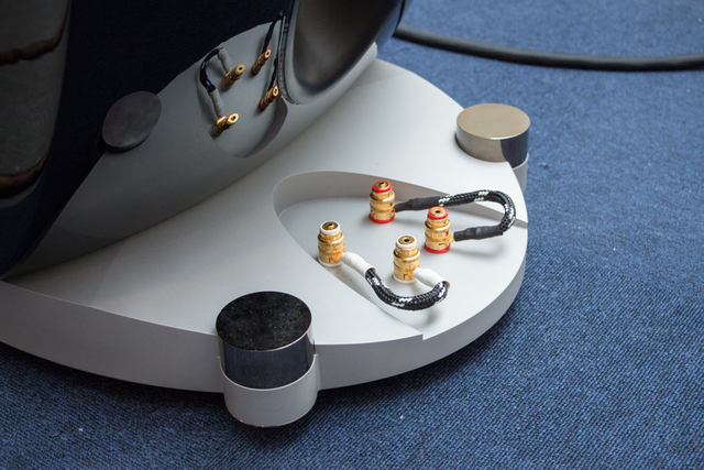 ベース部は、シングルブロックのアルミから削り出さており、この部分だけで25kgという質量をもつ。エンクロージャー背面下部には、2個の楕円形バスレフポートを備えている。