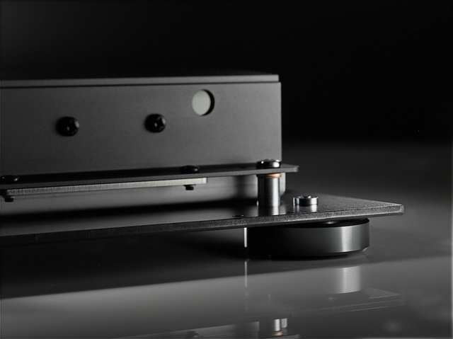 またベース鋼板の表面処理の見直しも実施。従来は冷間圧延鋼板を用いていたのに対して、本機では熱間圧延鋼板に黒クロメイト処理を施すことで、シャーシの外観をそのままに剛性を高めた。なお、シルバー/ブラックの両モデルでブラックのベース鋼板を採用している。インシュレーターはアルミ製となる。