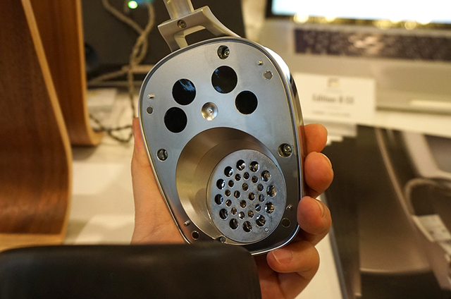 Willberg氏は「S-Logic EX」について改めて説明。これはドライバーをイヤーカップ内部で前後/上下にそれぞれ斜めに傾け、振動板と耳の距離を離れた位置に配置するというもの。耳と平行にドライバーを置いた場合よりもナチュラルな臨場感と立体感のある、スピーカーで音楽を聴くのに近いサウンドを再現することができるのが特徴だという。