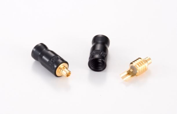 「MMCX 2個1組 純国産品コネクター」は、中心導体にベリリウム銅+金メッキを採用したMMCXコネクター。外部導体は真鍮+金メッキで、アウターシェルはアルミ+ブラックアロマイトとなっている。細かなハンダ付け作業をしやすいよう配慮し設計したという。