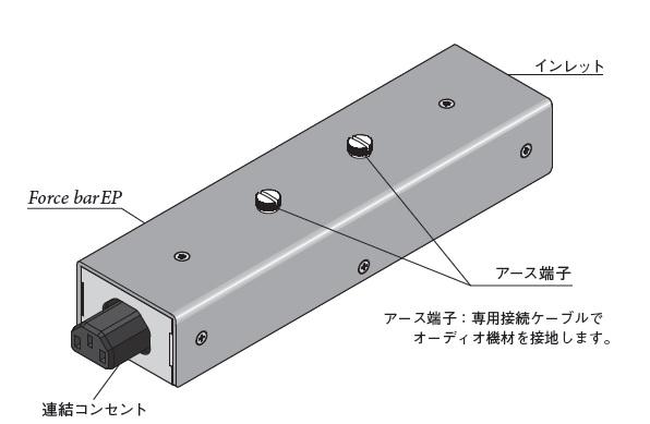 また、構造的にも従来のForce barシリーズは、供給される電源ラインのアース線と外筐が物理的にショーティングされているが、今回の「Force barEP」では、不要なアースループを避けるため、電源ラインのアース線と外筐を構造的に分離させている。これにより仮想現実アースに単独で接続することが可能になる。