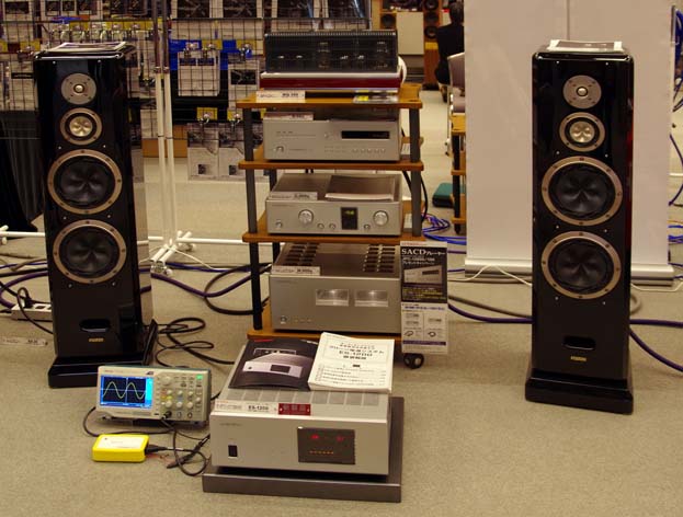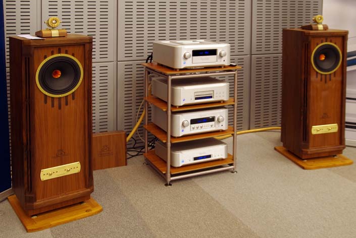 一番広いコンベンションホールAでは、試聴スペースを広く確保したブースが並ぶ。このホールでは、メーカー/輸入商社約30社が出展。スピーカーシステムやアンプから、ケーブル、ラック等まで、話題のモデルが数多く展示されていた。