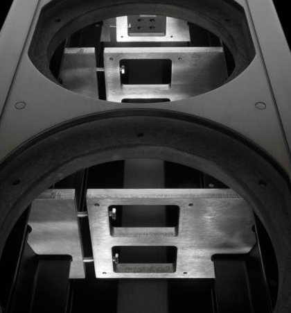 また、キャビネット内部の設計は「改良型アルミ製内部補強構造」(TIM)とすることで、筐体全体を制御された張力下に置き、内部の振動も最小限に抑えているという。またデザインにもこだわり、フロントカバーをバッフルと同一平面状として一体化している。