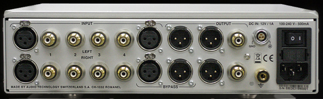 入力はXLRが1系統(入力トランス付きはオプション)、RCAが4系統。出力はXLRを2系統(出力トランス付きはうち1系統がオプション)、RCAを1系統、ヘッドホン端子を1系統装備。また、オプションのMPS(マルチパワーサプライ)との互換性に配慮し、12VDC IN端子も備える。