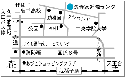 ●アクセス:我孫子駅北口より「あびバス(布施回転広場前ゆき)」乗車、バス停「久寺家近隣センター」より徒歩1分