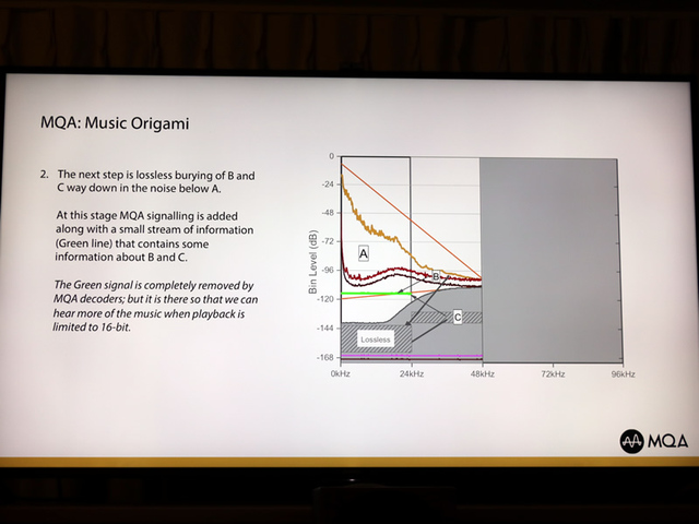 スチュワート氏は「神経工学では、人間の聴覚は周波数より時間にシビアであることが分かっており、MQAはこの考え方を採り入れている」とコメント。「サンプリングレートを上げれば音質も上がるが、それによる音質向上の幅は(サンプリングレートの上がり幅と)比例するほどの大きさではない」とし、一般的なハイレゾとMQAとの考え方の違いを説明した。