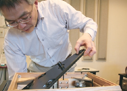 精度が高く、美しいLINNのAKURATE LP12。たくさんのLP12の組み立てを行ってきた(株)リンジャパンの古川雅紀氏が、一から組み立てを披露しながら、ポイントごとに丁寧に機構の特徴と組み込みの解説を行っている。