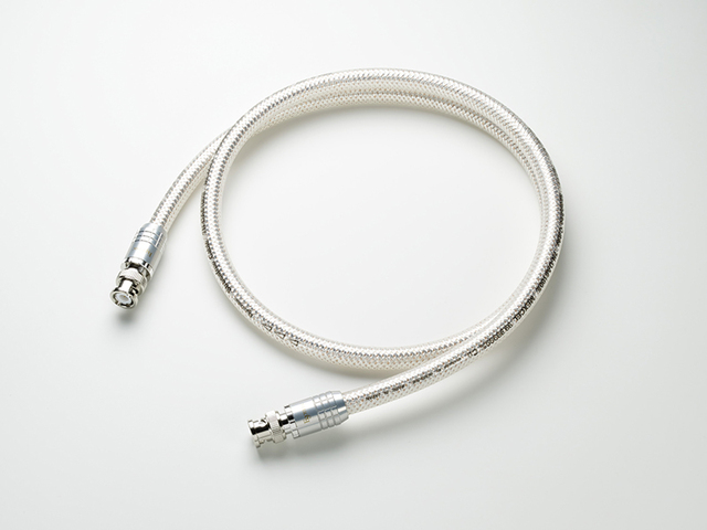 【SPEC】●ラインナップ:RAC(1.0m×2本)¥520,000(税抜)、BNC(1.0m×1本)¥260,000(税抜) ●中心導体:7N クラスCU MEXCEL 単線 φ1.6mm x 1 ●外部導体(シールド):シルバーコーティング 7N Cu 平角スパイラル巻き / 3.0W x 0.08t、銅マイラーテープ、シルバーコーティング銅編組 ●最大ケーブル外径:11.3mm ●導体抵抗:8.0mΩ/m以下 ●静電容量:50pF/m ●インピーダンス:75Ω