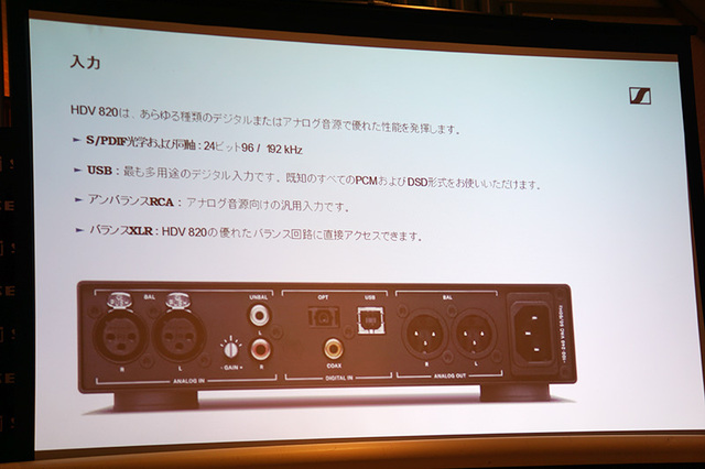 ゼンハイザージャパンは、4.4mmバランス接続に対応した新ヘッドホンアンプ「HDV 820」を発表。7月に発売する。価格は未定だが、30万円前後になる見込みだという。なお、今回の発表は世界中で日本が最も早く、これはゼンハイザーとして非常に珍しいことだという。日本市場にかける同社の意気込みが伝わってくる。