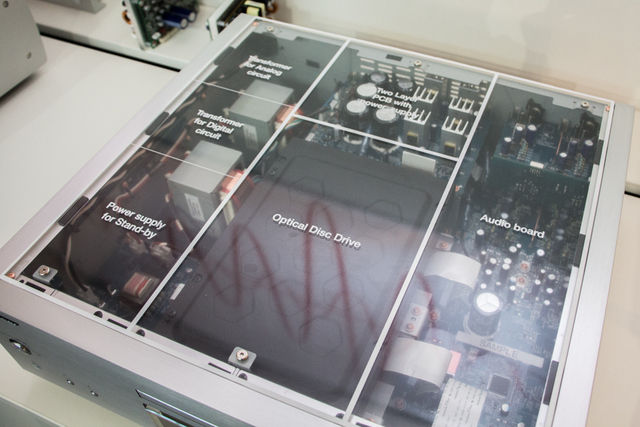 具体的な質量は明かされなかったが、ブースに展示されていた天板なしの試作機でも持ち上げてみるとかなりの重量があり、その物量の大きさが伺えた。現時点で価格や発売時期、日本への導入があるかは未定とのこと。ディスク再生へのこだわり具合はかなりのものと感じただけに、ぜひ日本導入も期待したい。