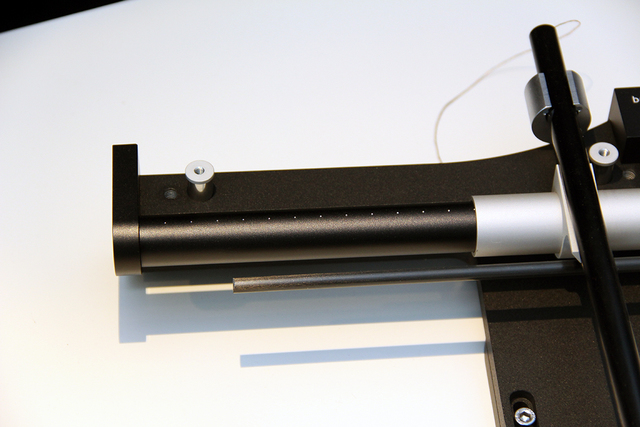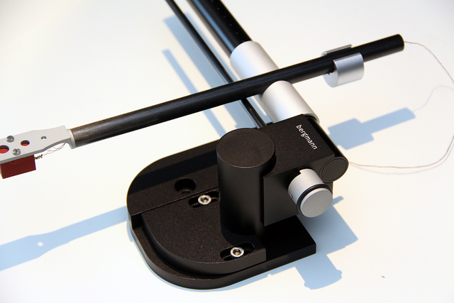 アームベースにはアルミを採用し、2つのネジによって前後位置を設定可能。基本的にはbergmannのアナログターンテーブル「Galder」への取り付けに最適化したアームベースを装備するが、もちろん他のブランドのターンテーブルへの取り付けも可能。その際は通常の9インチのトーンアームと同じ位置へ取り付けることになる。