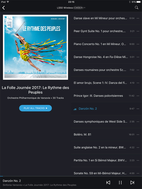 LS50 Wirelessアプリケーションは最新バージョンの1.2.0が公開されており、細かい修正が施されたほか、ストリーミングサービスTIDALへの対応を実施。アプリ内にTIDALが埋め込まれたかたちで、「MY FAVORITE」や検索機能など単体アプリ同様に使用できる。
