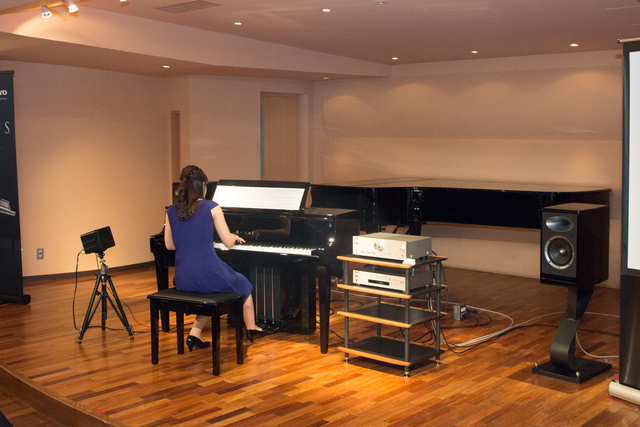 具体的にはKAWAIがピアノ開発のサウンドチューニングを行う専用試聴室で、発表会にもゲストとして招かれたピアニストの圓谷綾乃さんが、KAWAIのトップ・コンサート調律氏である村上達哉氏のサポートのもと、SK-EXを演奏。DSDで録音した。これをA-9150で再生したものを両氏が試聴してチェックを行い、チューニングを追い込んだとのことだった。