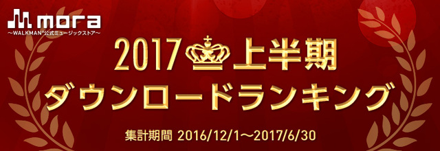 (株)レーベルゲートは、同社の音楽ダウンロードサービス「mora」の2017年上半期ダウンロードランキングTOP10を発表した。