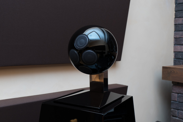 パワード球面波マルチトゥイーターは、4個の36mm径・B4Cボロントゥイーターを球体上に近接球面配置したもの。この独自の配置により高い空間再現性を実現しつつ、トゥイーターの総面積を増やすことで音響エネルギーを確保。より実在感のある高域再現を可能にしたという。各ユニットは低歪ダブルネオジム磁気回路を搭載。トゥイーターに採用されたB4Cボロン振動板は、毎秒12,700mの伝搬速度と適度な内部損失を実現すると紹介されている。