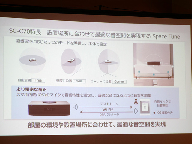 独自の音場補正機能「Space Tune」も、Technicsの専用アプリから利用できる。iPhoneやiPadのマイクを利用するもので、対応するのはiOS版アプリのみ。まずは動画で設定の手順を確認して欲しい。