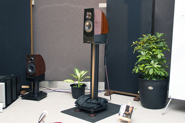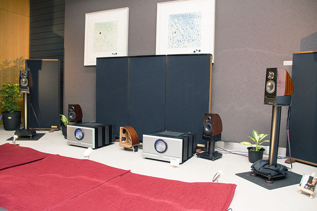 キソアコースティックでは、スピーカー「HB-X1」と、オーディオアクセサリーブランド“Shizuka”のオーディオ用カーペット「SAC-1016」、オーディオボード「NCB SERIES」を使用した試聴デモを行っている。