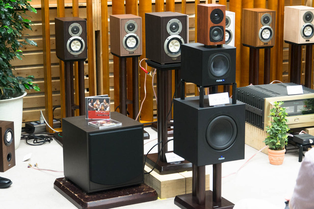 試聴デモでは、独特なHR形状ウーファー搭載のブックシェルフスピーカー「GX100BJ」と、サブウーファー「CW250B」「CW200B」や「PM-SUB8」を組み合わせた、コストパフォーマンスの高いシステムの提案も行われていた。
