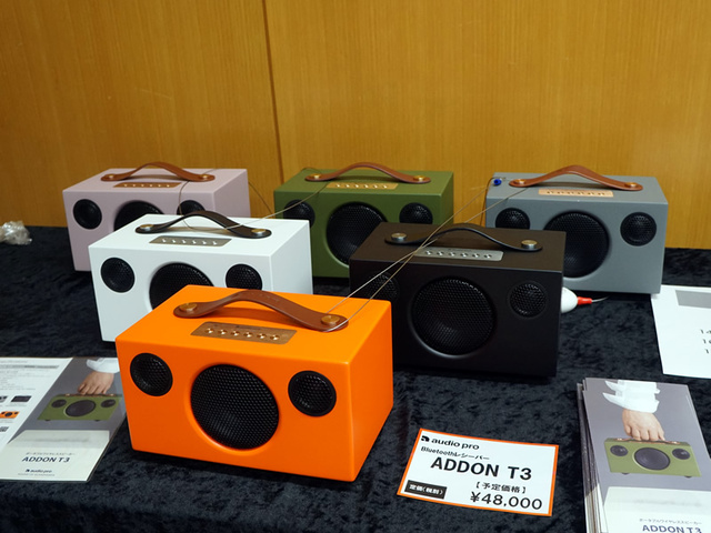 また、AUDIO PROからはBluetoothスピーカー「ADDON T3」を展示。小さなスピーカーでも深みのある低音や豊かな音圧を再生できるよう音響設計を最適化しているとのことで、Bluetoothのバージョンは4.0。予価は48,000円(税抜)。