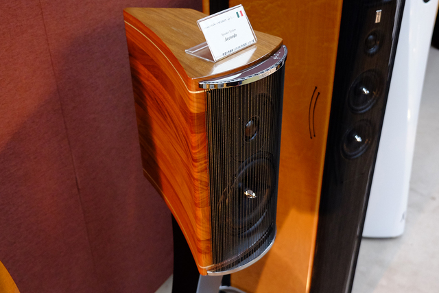 アーク・ジョイアのブースでは、先日取り扱いが開始されたばかりのスピーカーブランド、Estelon(エステロン)のフロア型スピーカーシステム「YB」を出展。同社が取り扱うVOXATIVやFRANCO SERBLINなどのスピーカーも試聴できた。