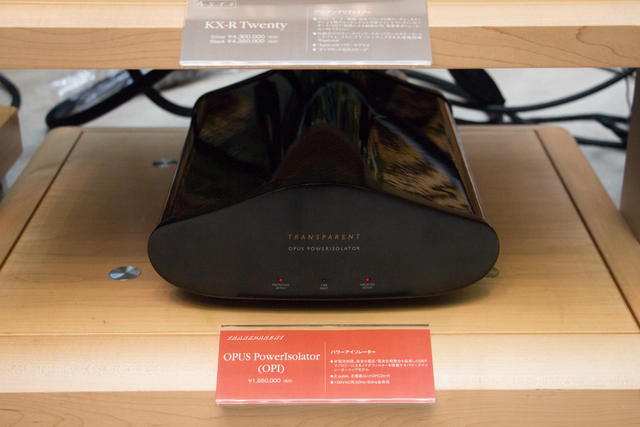 TRANSPARENTのパワーアイソレーターの旗艦モデル「OPUS Powerisolator(OPI)」も試聴システムに組み込まれていた。本機は、電流制限を一切課すことなく、電圧/電流の位相整合の正確性を追求して100%の電源効果を実現したとするG5テクノロジーによる独自の高性能ノイズフィルターを搭載する。