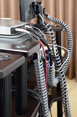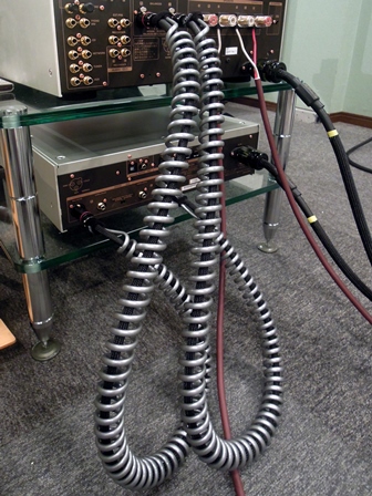 システムの電源ケーブル、RCAケーブル、スピーカーケーブルなどに「Helca1」を装着していき、ビフォーアフターで効果を体験していく予定という。