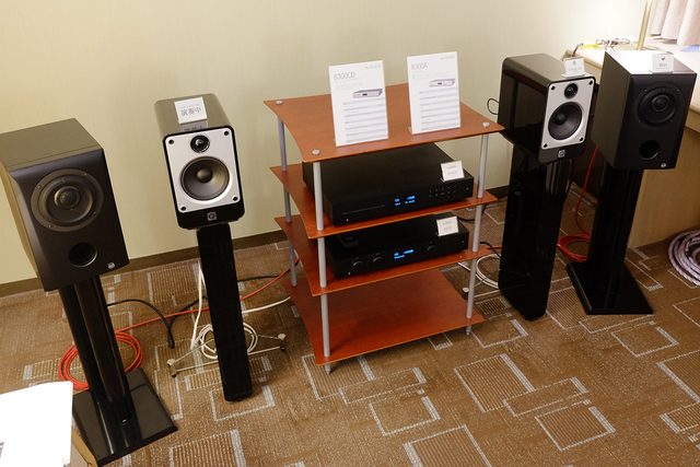 イースタンサウンドファクトリーはQ AcousticsのスピーカーやMYRYADのオーディオシステムをデモ。同時にQEDのケーブル製品も展示した。メースはHarbethやKiso Acousticのスピーカーを出展。木製スピーカーのサウンドが集中して聴けるブース展開となっていた。