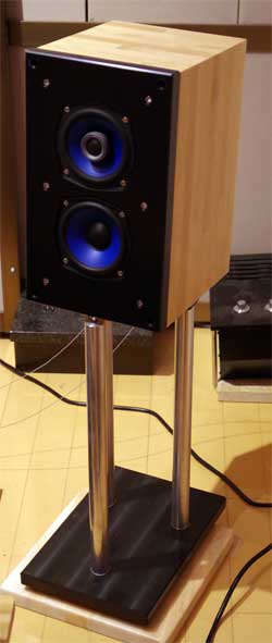 【SPEC】●方式:2way2スピーカー バスレフ型 ●使用ユニット:ウーファー5インチポリプロピレン×2 ●トゥイーター1インチソフトドーム×1 ●エンクロージャー:バッフル25mm厚アルミ削り出し、リフレクター12mm厚アルミ削り出し、(アルミイコライザー付)、エンクロージャー21?厚樺集成材 ●公称インピーダンス:4Ω(最低インピーダンス) ●周波数帯域:25Hz〜25kHz ●出力音圧レベル:91dB ●定格入力:50W ●最大入力:80W ●最大外形寸法:216W×364H×295Dmm ●質量:11.4kg