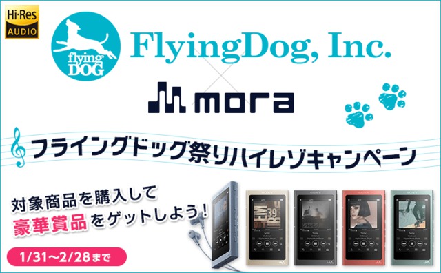 音楽ダウンロードサービス「mora」は、FlyingDogレーベル(ビクターエンタテインメント)とコラボレーションした『フライングドッグ祭り』ハイレゾキャンペーンを本日1月31日から2月28日まで実施する。
