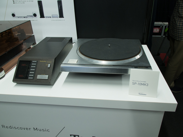 5階にブースを構えるテクニクスは、5月25日より発売のダイレクトドライブ方式ターンテーブル「SP-10R」、またSP-10Rを中心にしたアナログレコードプレーヤー「SL-1000R」を出展。SP-10Rは両面にコイルを配置して12極18コイルで駆動するコアレス・ダイレクトドライブモーターを採用したフラグシップモデルとなる(関連ニュース)。