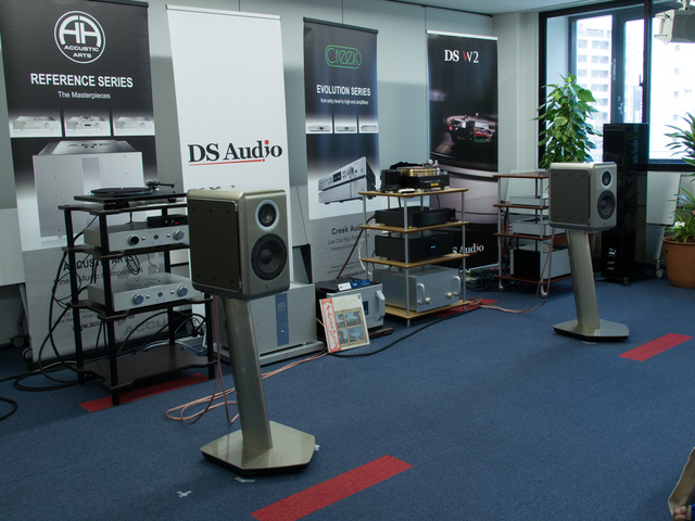 デジタルストリームは今年発売の光電型カートリッジ「DS-W2」を出展(関連ニュース)。試聴スペースではTechDASのターンテーブル「Air Force III Premium」にDS-W2をセッティングし、レコード再生を行った。また70万円のフラグシップモデル「DS Master1」も合わせて出展されていた。