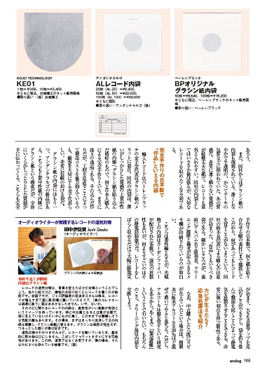 本誌が発売される6月の梅雨時から夏にかけては、大切なレコードにとって受難の季節だ。そこで今号では湿気対策、カビ対策をテーマとして、炭山アキラ氏がレコード収納のポイントとなる紙製の内袋を紹介。手軽に買えるものから、こだわりの製品まで、詳細なレポートをお届けしている。