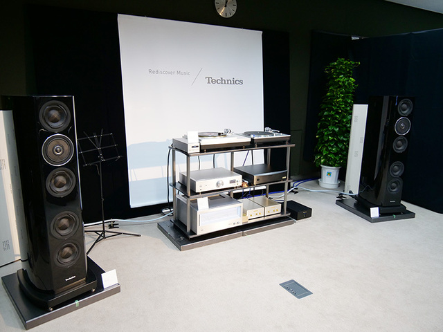 G602に構えたテクニクスのブースでは、一言で言うとテクニクスのほぼすべてが体験できる。ヘッドホンからエントリークラスの一体型コンポ、そしてハイエンドオーディオシステムに至るまで、この4年弱でTecnicsブランドの製品がいかに質・量ともに充実したかが、ブースに足を運ぶことですぐに理解できる構成になっている。