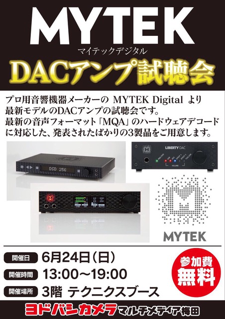 MYTEK DigitalのDACアンプ試聴会、ヨドバシ梅田で6月24日に開催