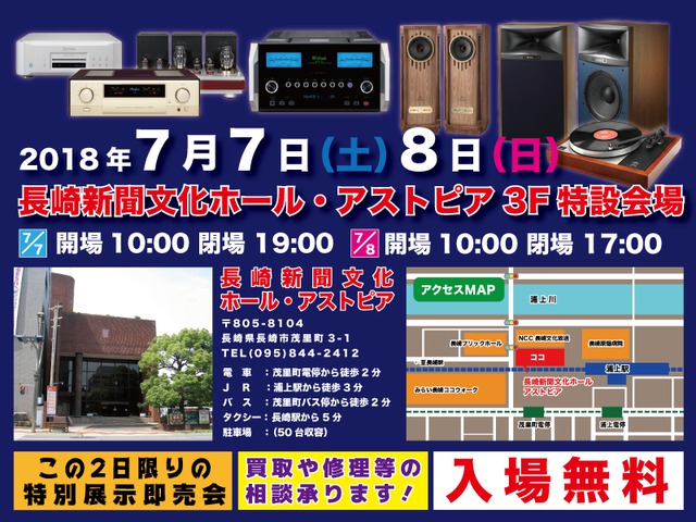 マックスオーディオ主催「西九州ハイエンドオーディオフェア2018」が7月7日より開催