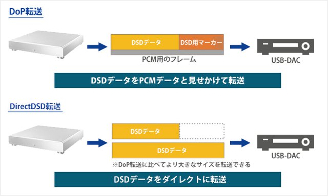 また、従来DoPでは対応してないかった、DSD11.2MHz対応のUSB-DACにおいても、DirectDSDによって再生対応できる機種が拡大した。