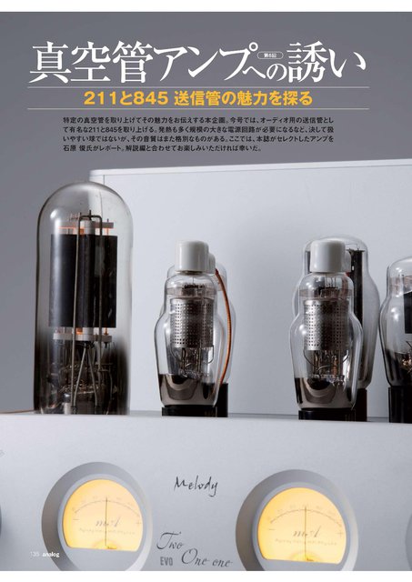 小特集では、特定の真空管にスポットをあて、その魅力に迫る『真空管アンプへの誘い』をお届けしています。第6回目となる今回は、大型直熱三極管である「211」「845」を取り上げ、両真空管の違いについての解説やハイエンドクラスのアンプの音質レビューを掲載しています。