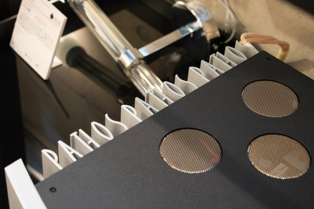 プリメインアンプ「Twin Towers」は同社の第1号製品であり、登場以来、外観はそのままに内部のブラッシュアップを重ねてきた。ツインタワーという名前は筐体の左右にそびえる対の大型ヒートシンクに由来する。最新の純A級InPol技術を搭載しており、出力は35W(8Ω)。