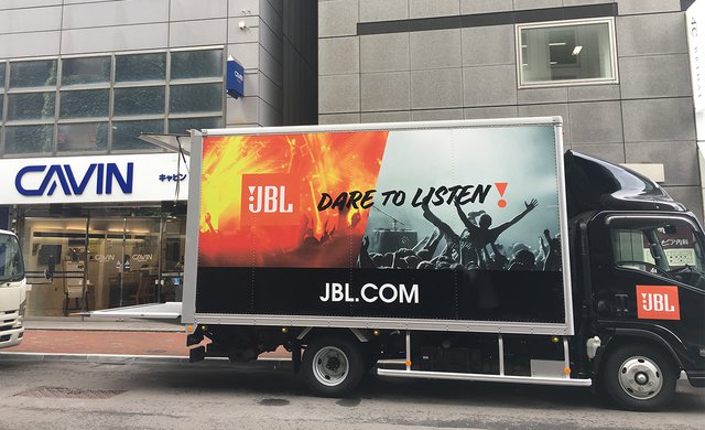 一斉に揃うとまさに壮観といった構成だが、その運搬に必要な労力もそれだけ大きい。業者に任せて運べば、費用も膨大になる。そうした物理的なハードルをクリアして、かつブランドを大きくアピールするために、同社では専用トラックを用意した。