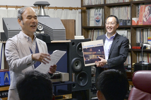 『フォー・ジェイ・ジー〜ジャズジャイアンツに捧ぐ/角田健一ビッグバンド』KTBB-004続く聴き比べは、『ブルー・トロンボーン/J.G.ジョンソン』と『フォー・ジェイ・ジー〜ジャズジャイアンツに捧ぐ/角田健一ビッグバンド』にともに収録されている「ビー・バップ」で実施。角田さんならではのトークを織り交ぜながら、それぞれの時代背景、録音の方式、さらに演奏を、来場者はワクワクしながら対比して楽しんだ。