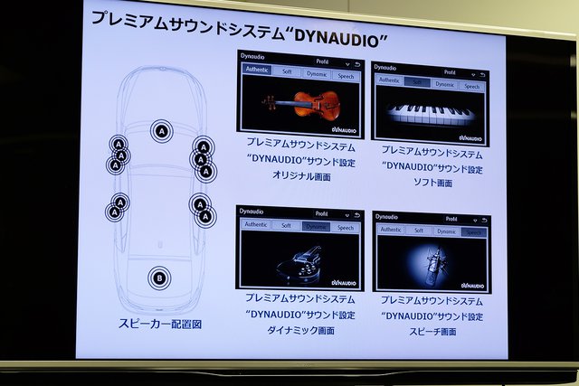 リスニングポイントの設定となる「サウンドフォーカス」の効果も大きいので、ここも忘れずに調整したい。フォーカスされた場所と異なる座席では、少し音像がぼやけるような感覚があるため、普段は「フロント+リヤ」にしておき、集中して楽しみたいときには運転席にフォーカスさせるなど使い分けしたい機能だ。