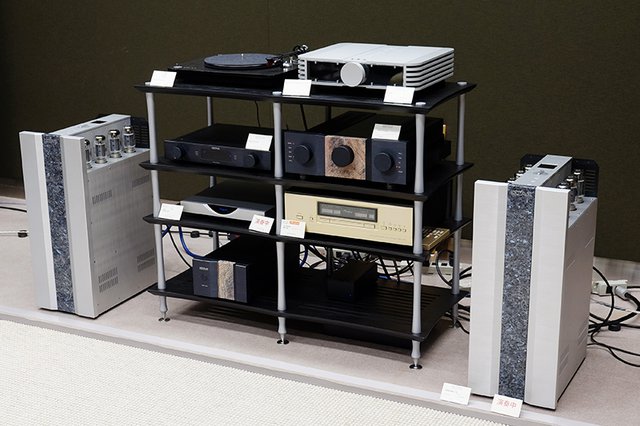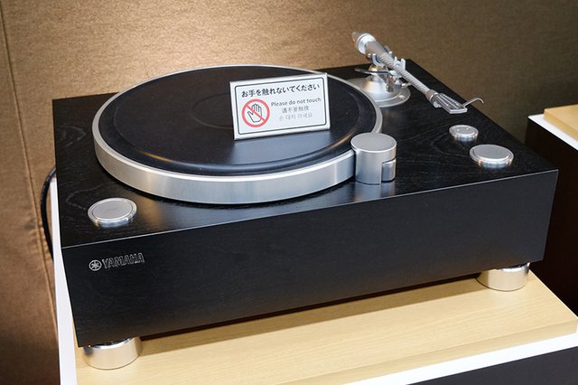 ヤマハのブースでは、ターンテーブル「GT-5000」(関連ニュース)からの信号を、先日国内導入が発表されたフラグシップのセパレートアンプ「C-5000」と「M-5000」を通じ(関連ニュース)、「NS-5000」スピーカーで再生するというフラグシップシステムが構築された。
