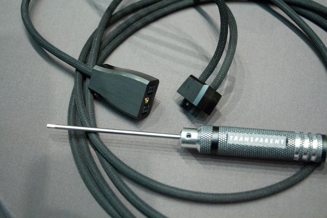 会場にはTransparentのオーディオケーブル群も展示されていたが、注目したいのは、同社初のヘッドホン用リケーブルが参考出展されたことだ。同社のケーブル技術を結集したというリケーブルで、ケーブルのヘッドホン側上端を独自コネクターで交換可能としている。これにより、組み合わせるヘッドホンに合わせて、ヘッドホン側コネクターを含む部分を交換して使える。同社は「1本のリケーブルで、様々な端子形状のヘッドホンと組み合わせて楽しめる」と紹介していた。なお会場に展示されていたものはプロトタイプで、コネクターの仕上げはさらに完成度が高くなるとのことだ。