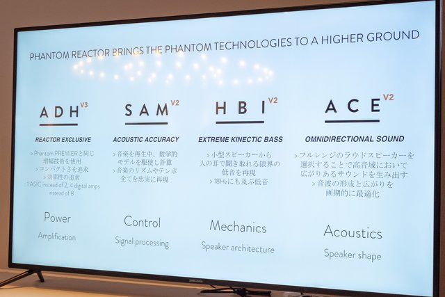発表会では、REACTORに関する技術についても触れられた。まず特許については、PHANTOMに使用された108の特許からさらに開発を行い、新たに52件の特許が追加されている。そして上位モデルPHANTOMに搭載する技術のADH、SAM、HBI、ACEも同じく搭載。こちらはREACTORにあわせ、さらにアップデートが行われている。