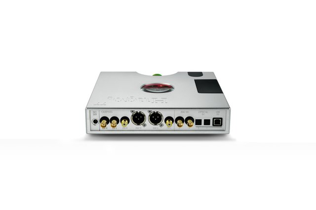USB入力はPCM 768kHz/32bit、DSD 22.4MHzまで対応。他にも96kHz/24bit対応の光デジタル入力(2系統)、Hugo M Scalerなどから768kHz/24bitを入力できるデュアル同軸BNCデジタル入力などの端子を搭載し、BluetoothのaptXコーデックにも対応。アナログ出力はバランスXLRとアンバランスRCAを1系統ずつ、6.4mmステレオ端子を2系統、3.5mmステレオミニ端子を1系統備える。外形寸法は235W×46H×223Dmm。