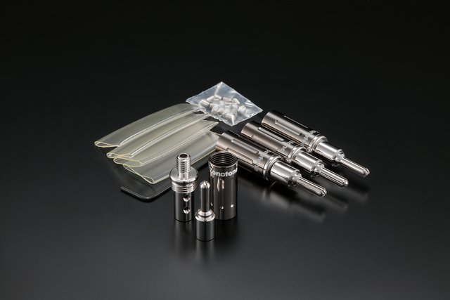 端子はRCAが精密一体加工によるコレットチャック方式で、キャップにはニッケルメッキ、ピンにはロジウムメッキを施している。キャップ最大径は14.5mm。XLRにはノイトリック社のプロ用端子製品を採用し、接触部分は金メッキ仕様。端子最大径は20.5mmとなる。