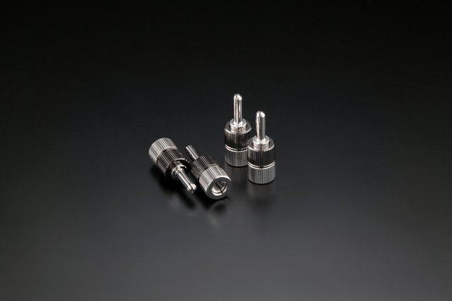 また、先端交換用・調整機能付バナナプラグ「LUGB-SLR」は、ゾノトーン初のバナナプラグ先端の太さが調節できるモデル。バナナプラグの根元のスクリューを回すことでバナナプラグ内のセンタースピンが移動し、バナナプラグの先端が押し拡げられ、スピーカー端子にフィットする仕組みとなる。