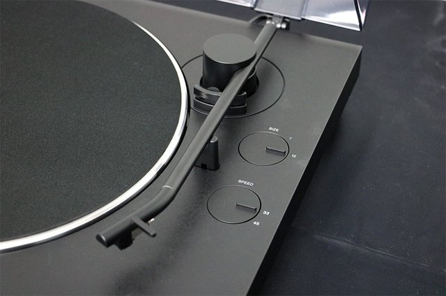 新設計の高剛性アルミパイプを使用した、ダイナミックバランス型のヘッドシェル一体型トーンアームを搭載。MMカートリッジが付属する。なおヘッドシェルは取り替え不可となるが、カートリッジは専用のものが用意され交換することもできる。回転数は33 1/3回転/45回転で、トーンアーム付近に切替スイッチを装備しており、回転数とサイズ(7/12inch)を再生するレコードに合わせて変更できる。