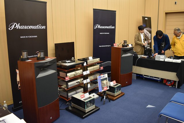 協同電子エンジニアリングは、昨年末に発売されたバランス入力対応MC昇圧トランス内蔵のフォノアンプ「EA-350」やMCカートリッジ「PP-2000」、新製品のパッシブアッテネーター式コントローラー「CM-2000」などPhasemationブランドのフルシステムでJBL「4700」をドライブ。